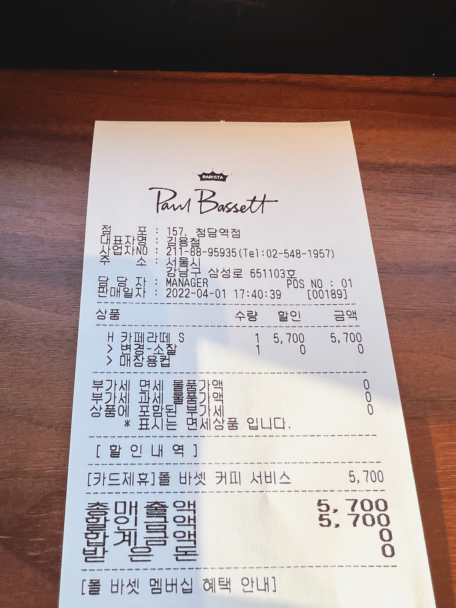 폴바셋 청담역점에서