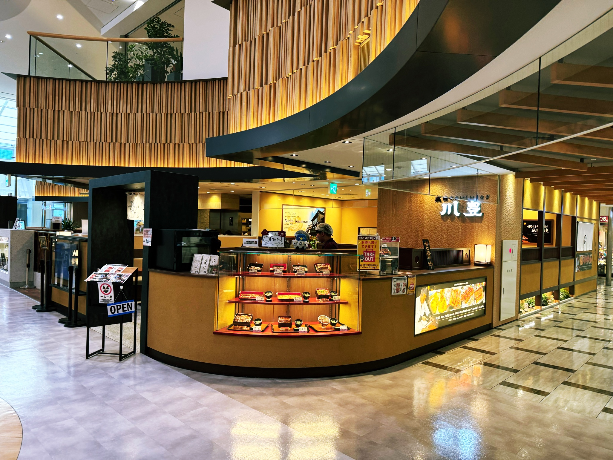 우선 짐을 다 붙이고 출국수속 밟기 전에 식당가로 향했습니다. 식당가 중앙에 있는 장어집 카와토요