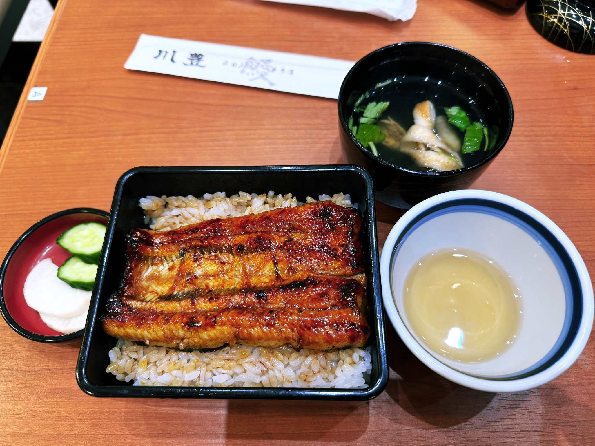 세트밀 메뉴 구성은 미니 장어 밥과 장어 간 스프 그리고 단무지, 오이입니다. 장어덮밥 아주 먹을만 합니다. 카와토요는 8시 부터 가능하기에 방문하시기 어려움이 없습니다.