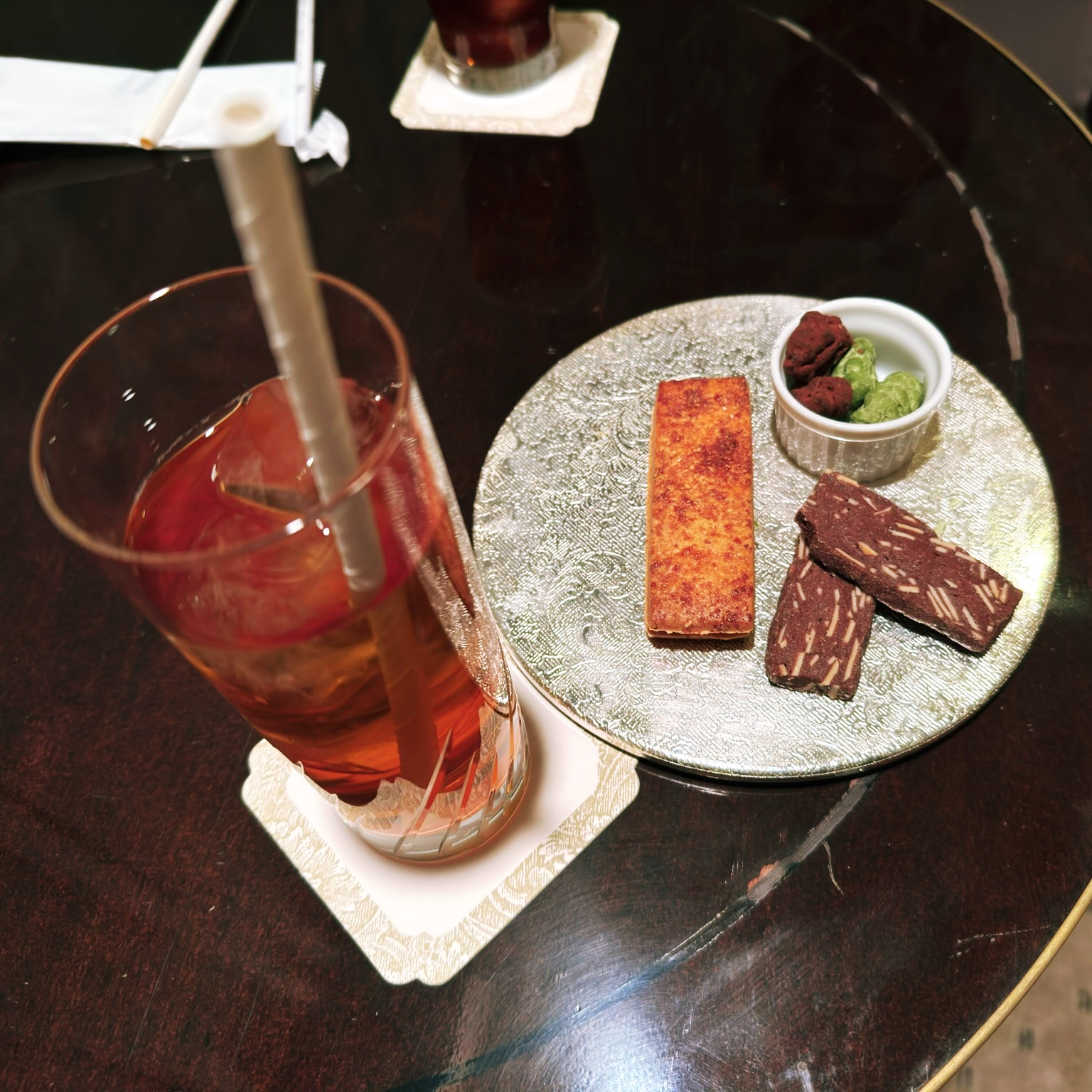 프리미어 라운지 입장 때 아까 입장권을 보여주시면 입장 할 수 있습니다. 라운지는 고풍스런 모습으로 아주 조용하고 다른 호텔 클럽 라운지와는 차별되는 모습이 주문을 통해서 간단한 다과나 음료를 받는 방식입니다.