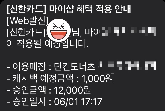 던킨 도너츠 6천원 캐시백해서 사기 | 신한카드 마이샵