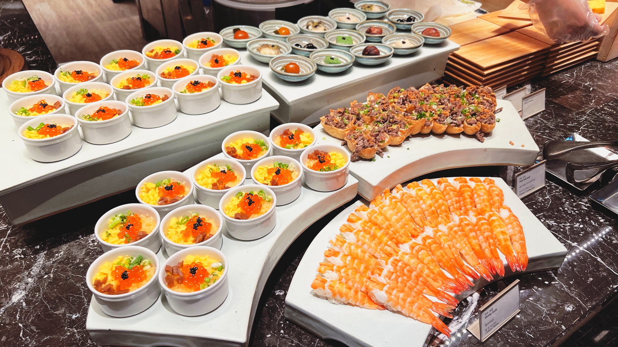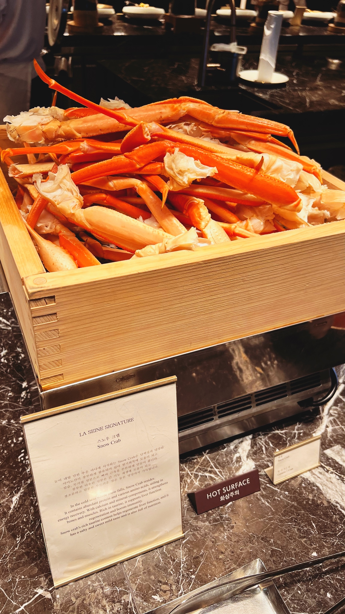 대게도 꽤 괜찮았습니다. 소공동에선 살이 없어서 사진도 안 찍었었는데 여긴 다리에 살이 꽤 괜찮게 있습니다. 아쉬운 것은 JW메리어트 서울의 플레이버즈에는 칼집도 나 있어서 대게용 가위도 필요 없는데 여긴 가위 필수입니다.