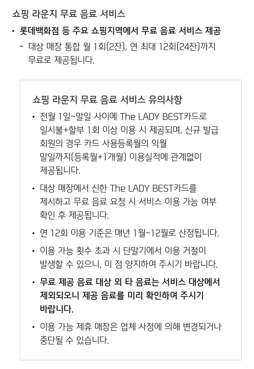 | The LADY BEST카드 특급호텔 라운지 무료음료 제공 서비스 변경 | 신한카드, 레베 (0) | 2022.04.05 |