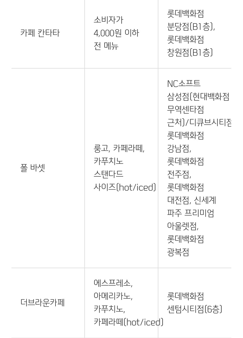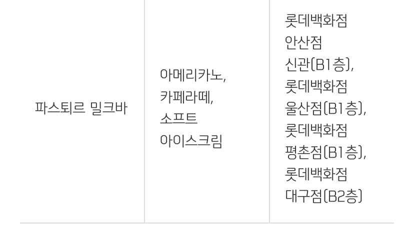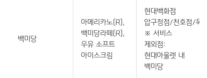 - 제공 음료 : 아메리카노(R), 백미당 라떼(R), 우유 소프트 아이스크림