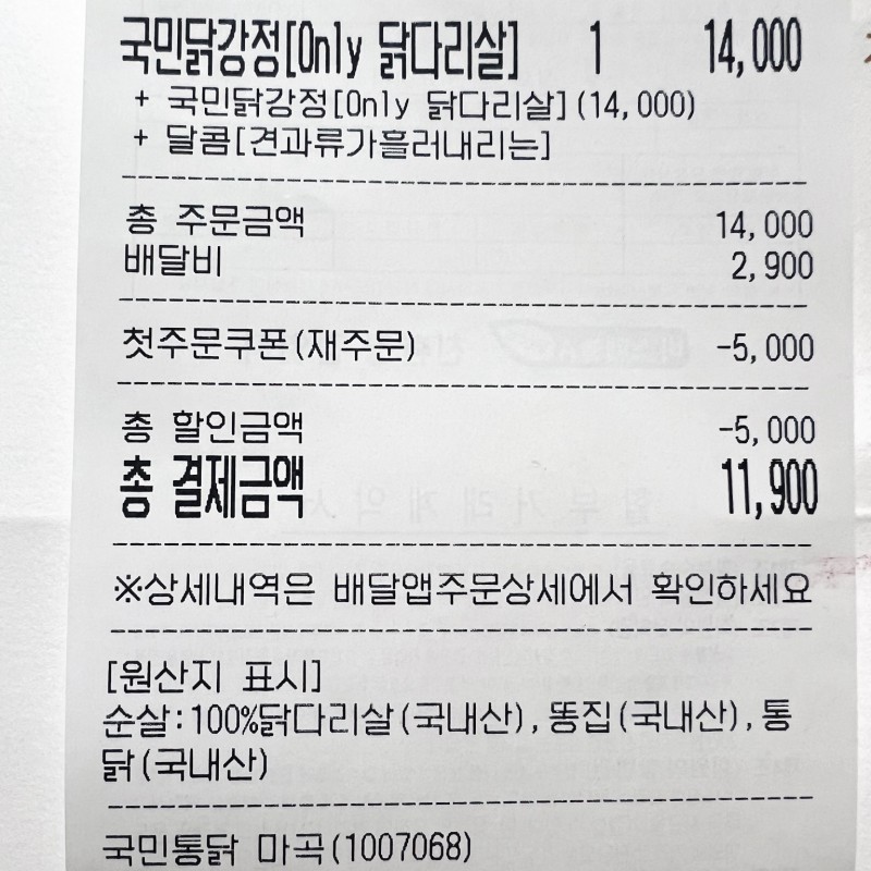 그런데 닭다리살 원산지가 국내산이네?