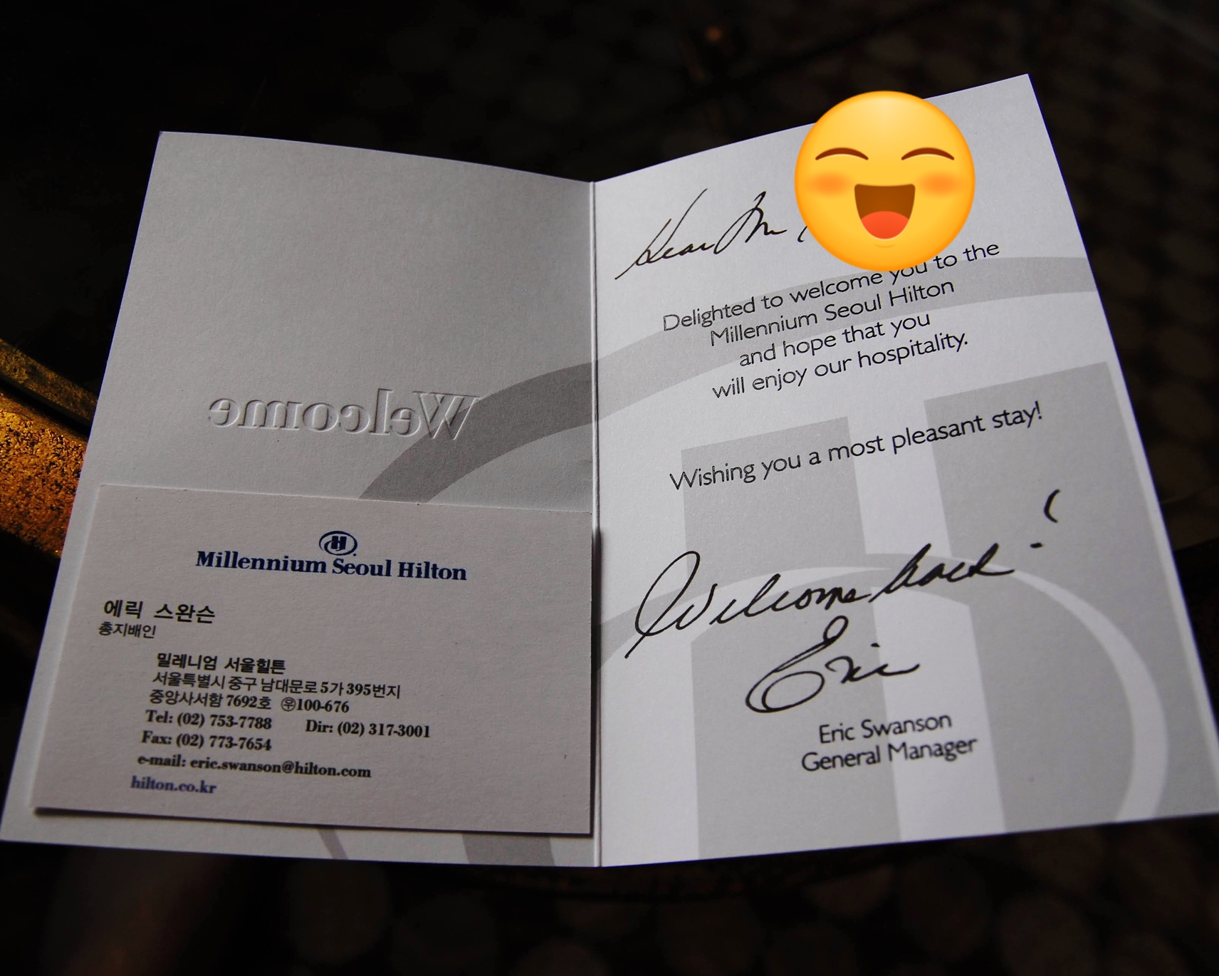 제 이름이 들어간 호텔의 방문환영멘트