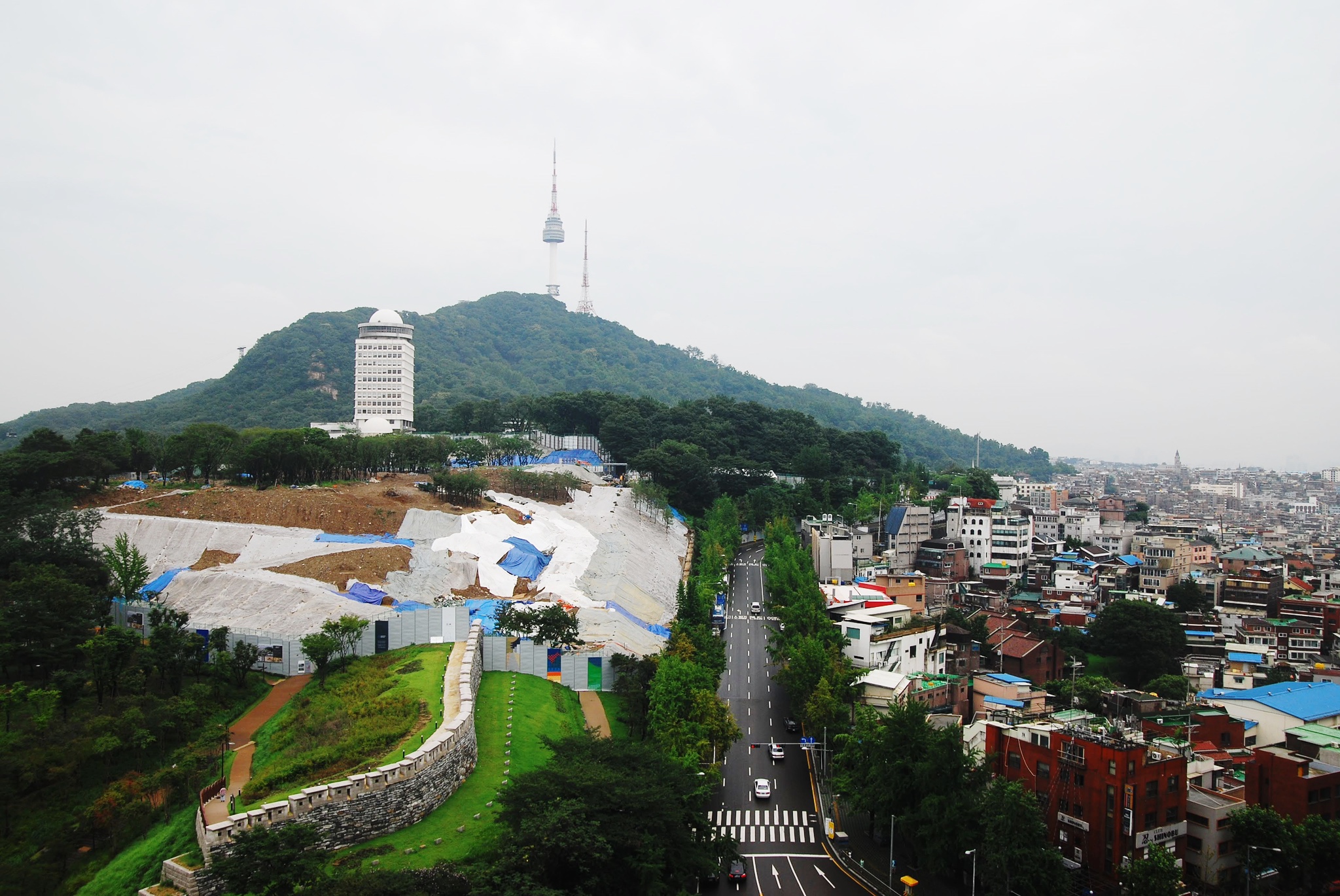 창문 너머로 후암동이 보입니다.