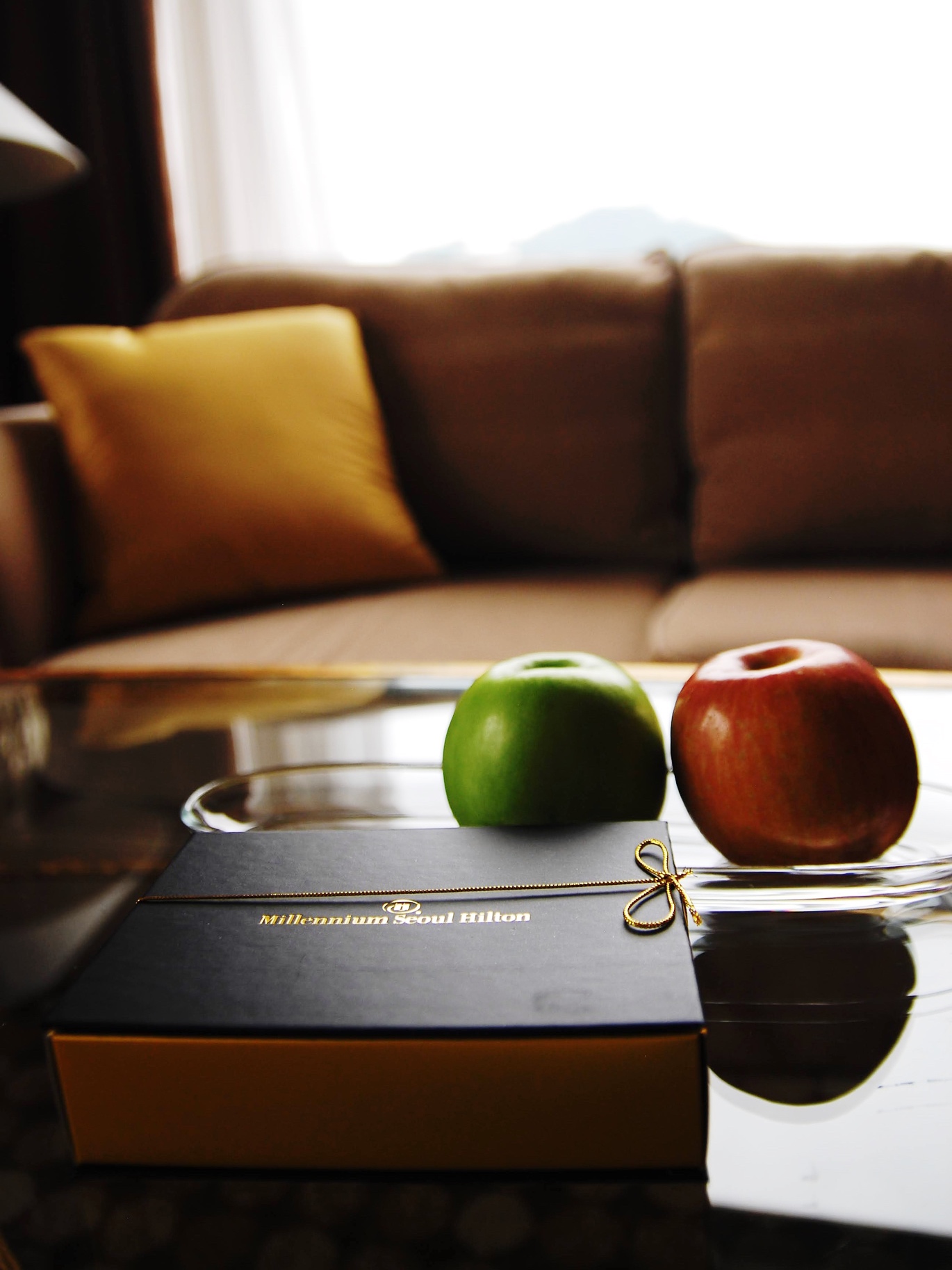 웰컴 어매니티 중 하나인 초콜렛과 사과. 초콜렛은 기억하기론 19층과 21층의 클럽 라운지에서도 드실 수 있었습니다.