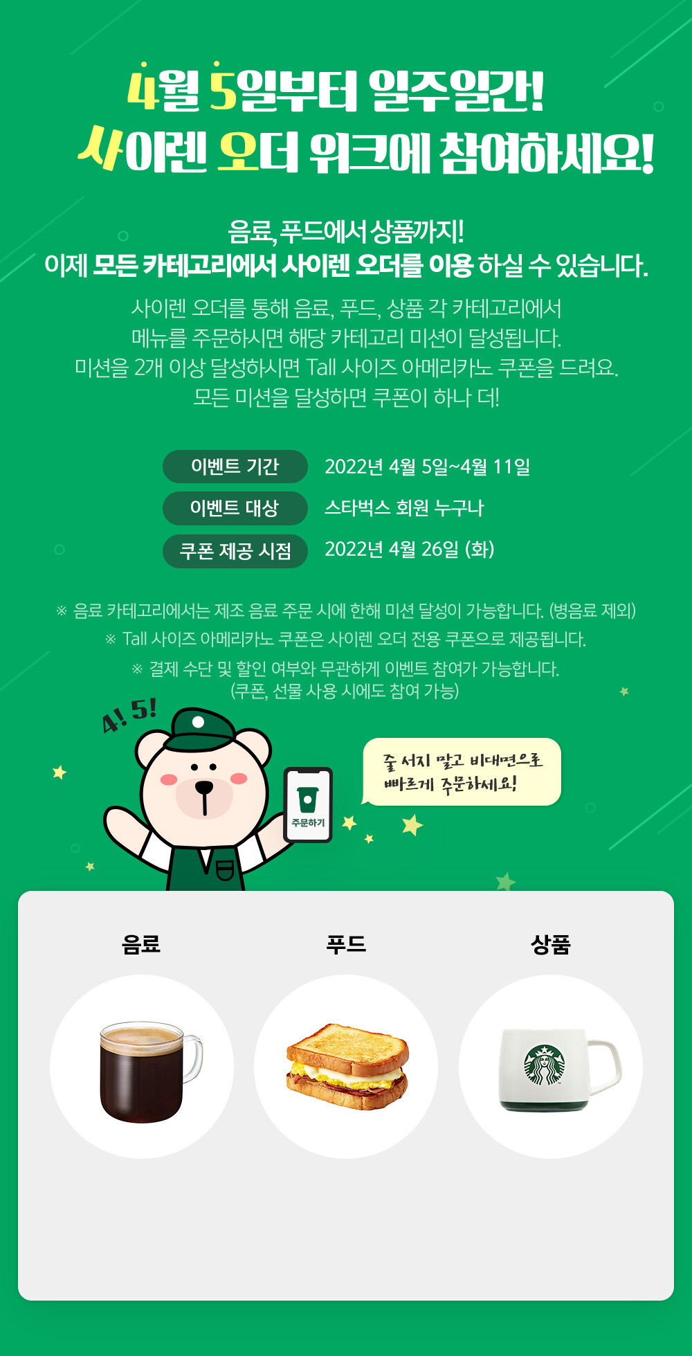 [스타벅스] 사이렌오더 사오위크 아메리카노 쿠폰 제공