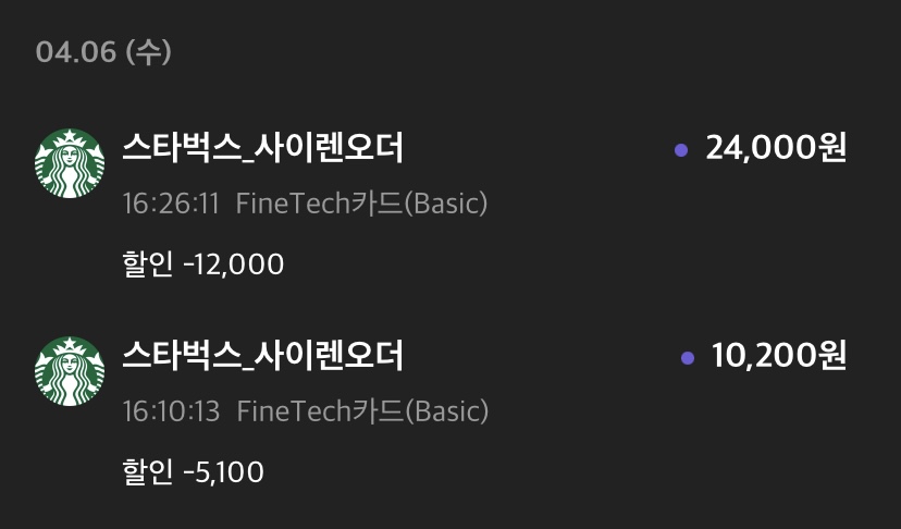 사이렌 오더 위크 이벤트 | 스타벅스 마곡웰튼점, 파인테크카드 50% 할인