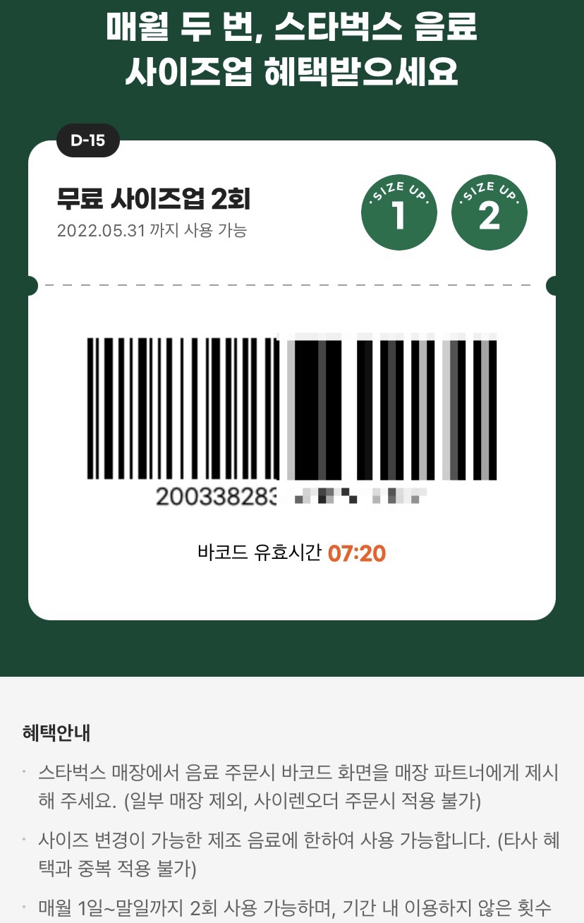 스벅 사이즈 업그레이드가 나와요!