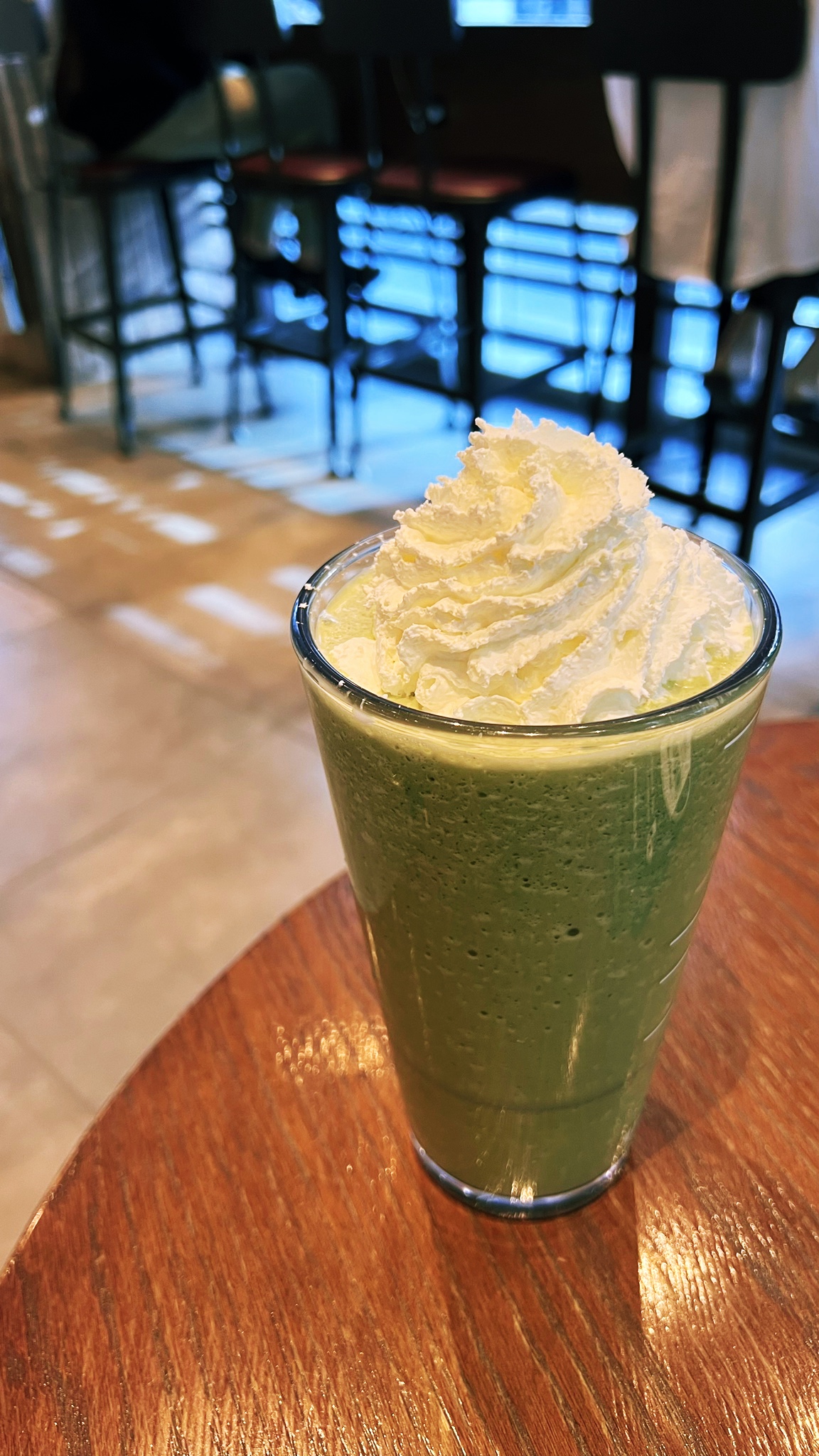 제주 유기농 말차로 만든 크림 프라푸치노를 주문