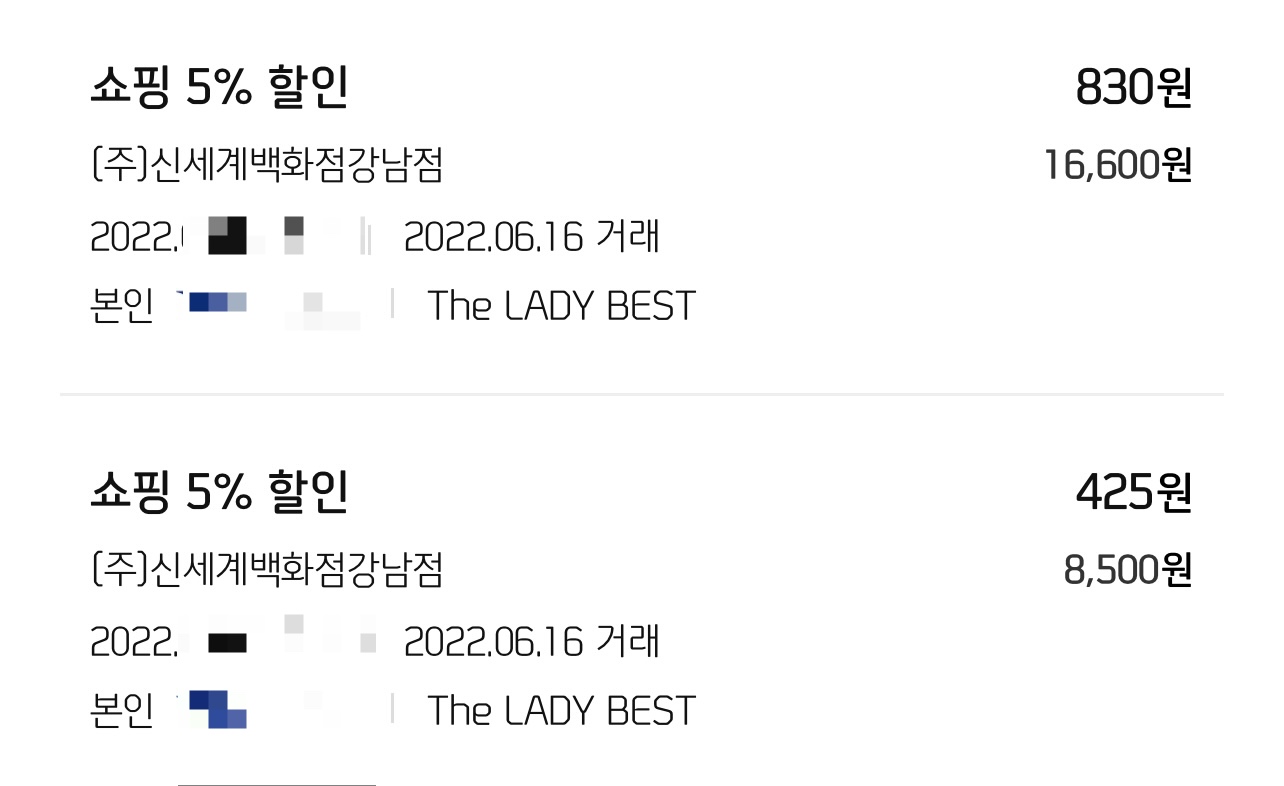 레베카드로 백화점 5%할인도 꼼꼼하게!