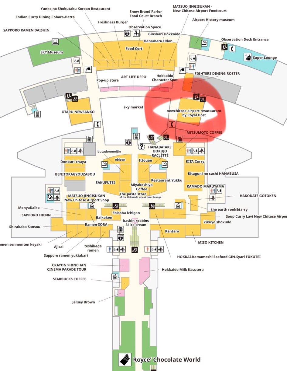 신치토세 공항에서 출국을 할 때는 국제선으로 바로 가면 안 되는거 아시죠?? 신치토세 공항의 꽃인 국내선 쇼핑센터를 전부 둘러봐줘야죠 ㅋㅋ 그리고 나서 더 라운지 어플로 갈 수 있는 로얄 호스트에 꼭 방문해서 식사도 하구요!!