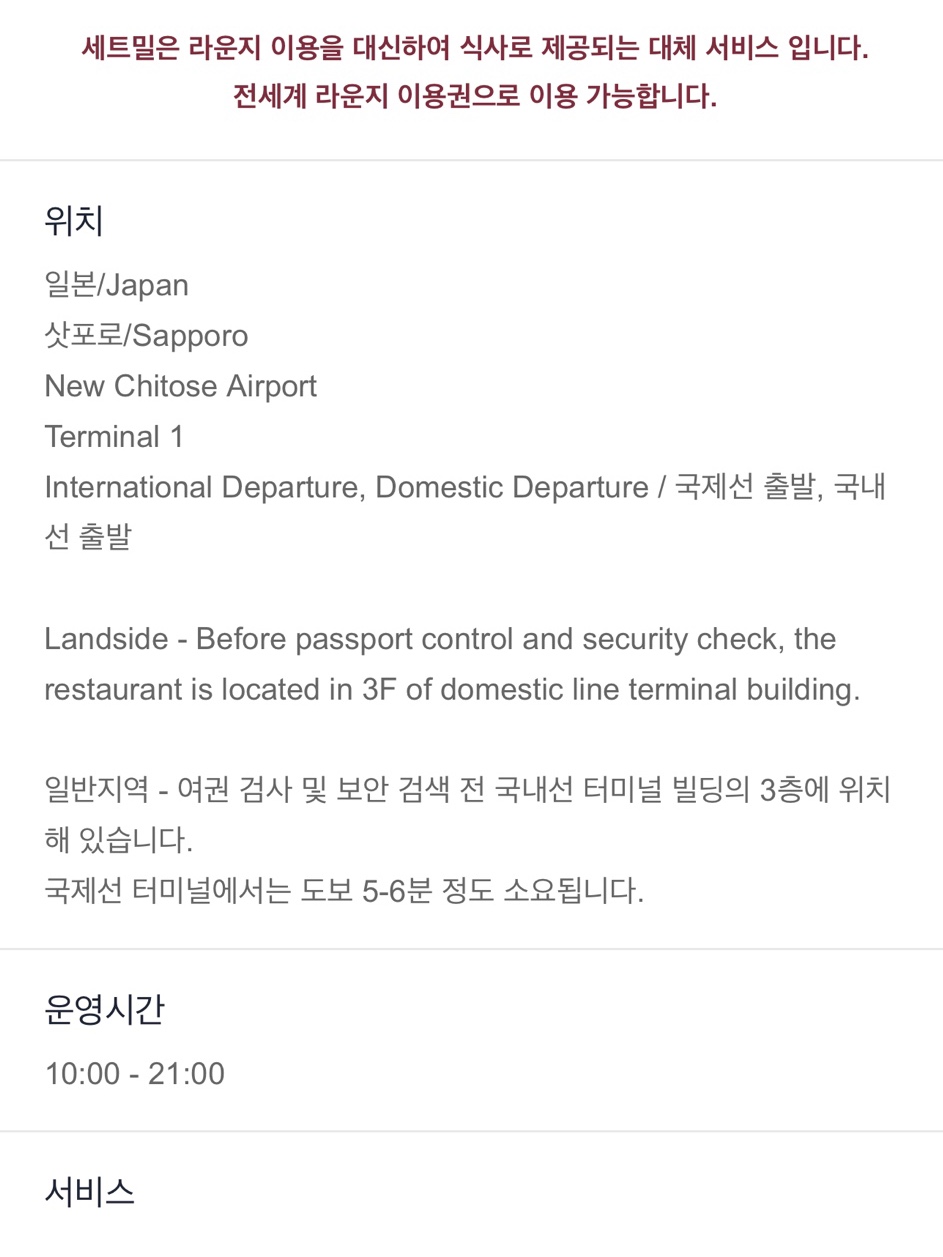 신치토세 공항에서 더 라운지 어플로 무료식사 하기