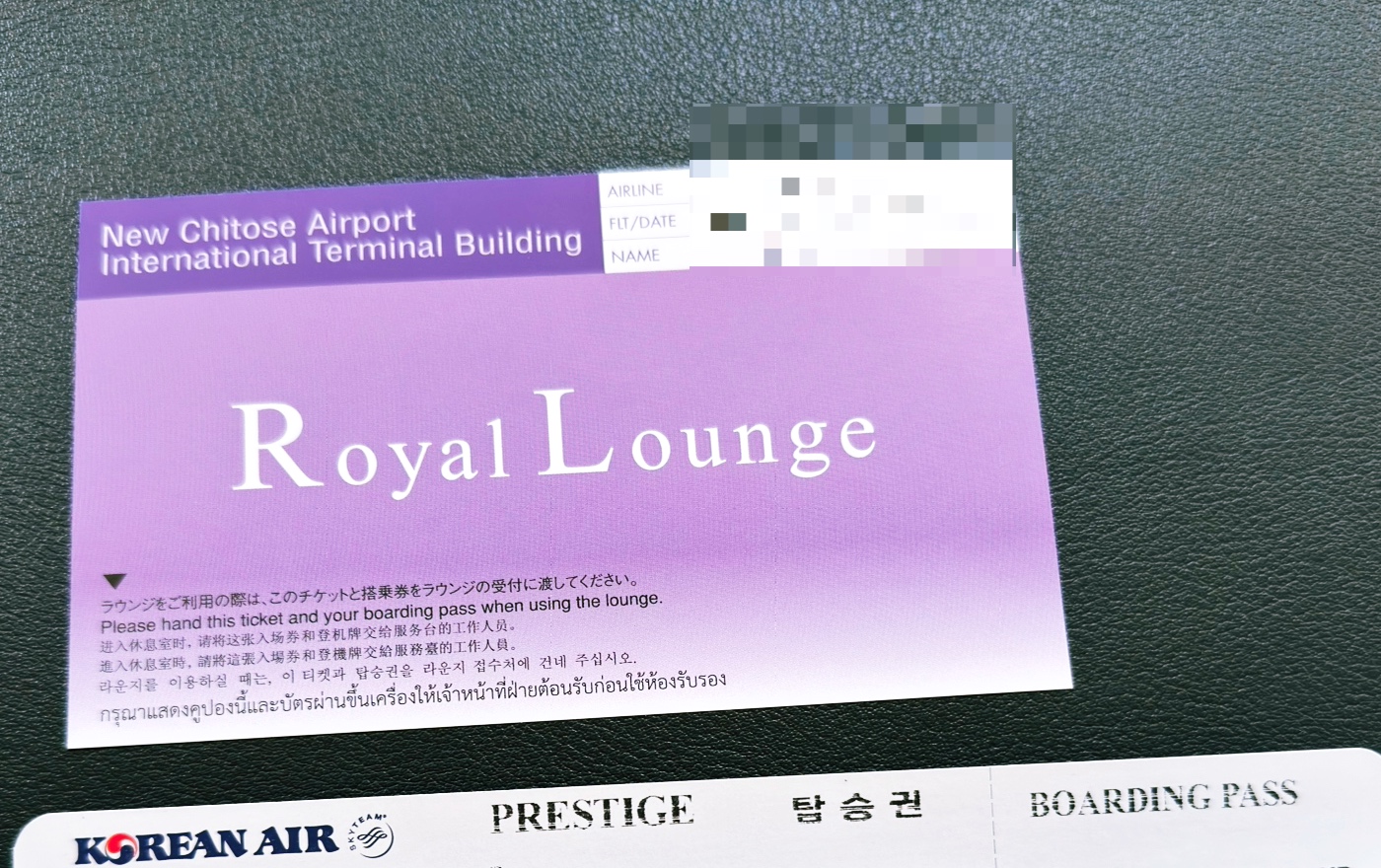 저는 대한항공 프레스티지석으로 예약해서 발권할 때 로얄 라운지를 갈 수 있는 티켓을 받았어요~