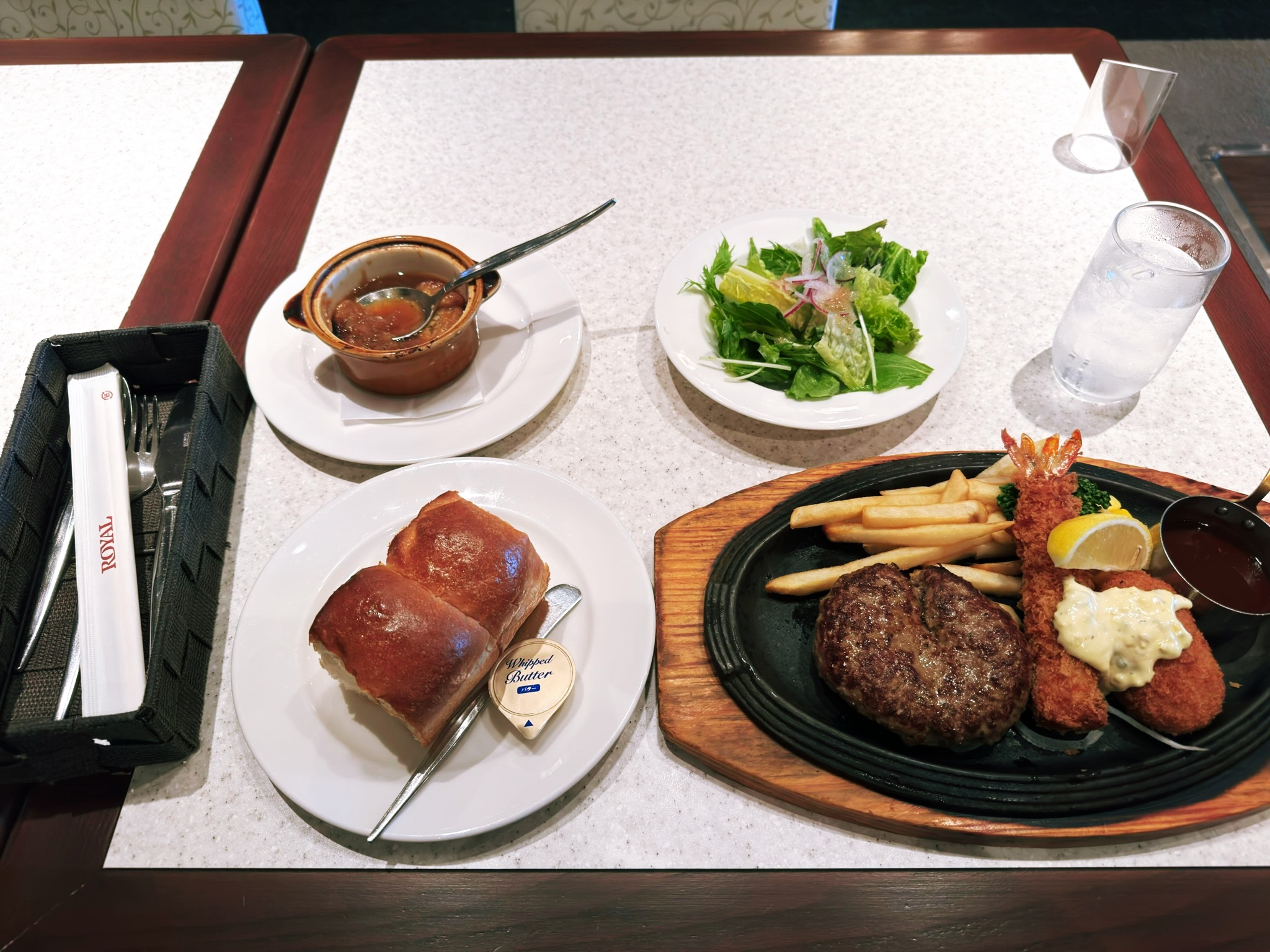 오른쪽 위에 음식들이 있습니다. 저는 로얄 호스트에서 너무 맛있게 먹은 나머지 거의 담질 않았네요