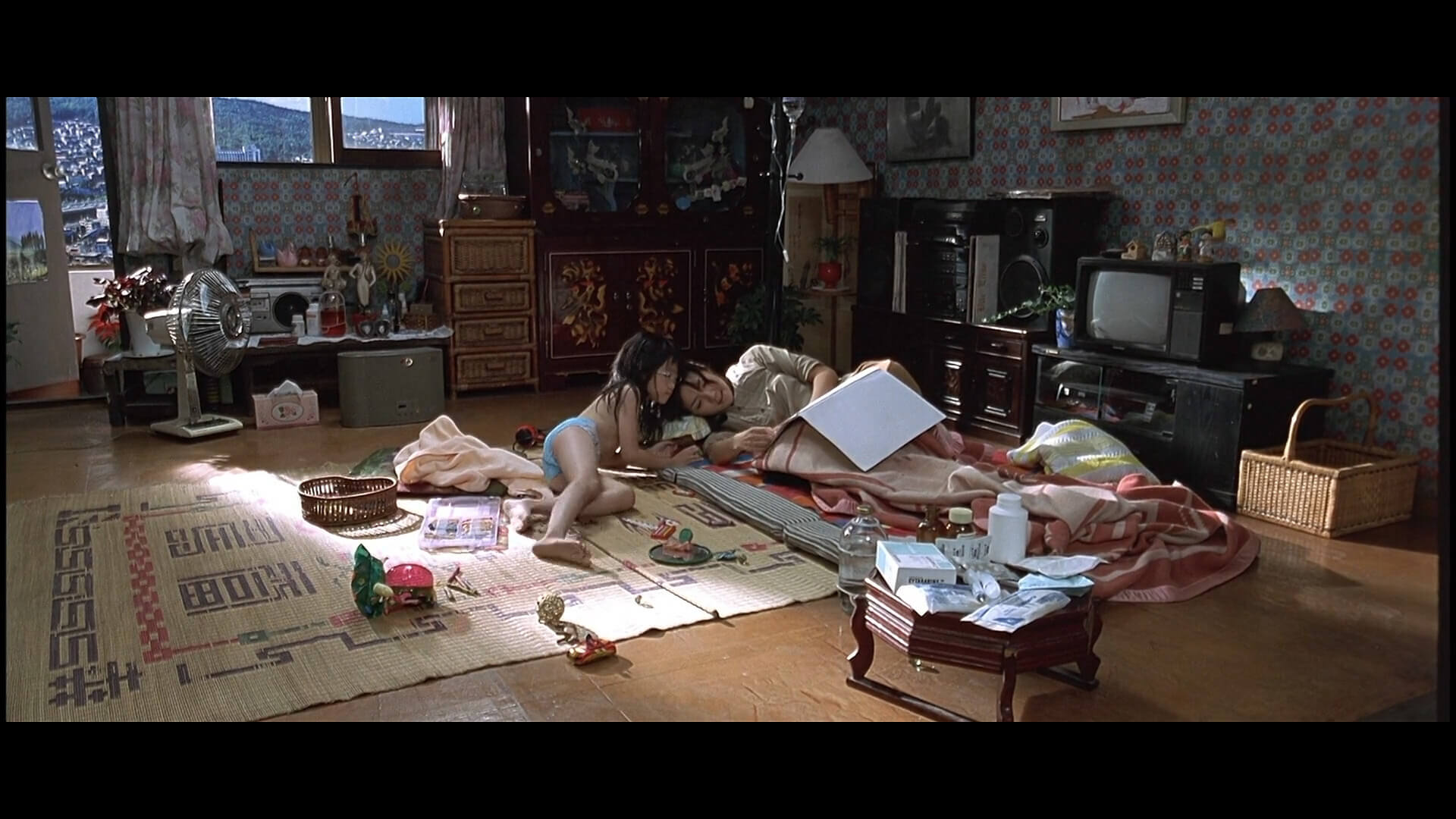 이 씬은 아마 실제 집이 아닌 세트로 보입니다.