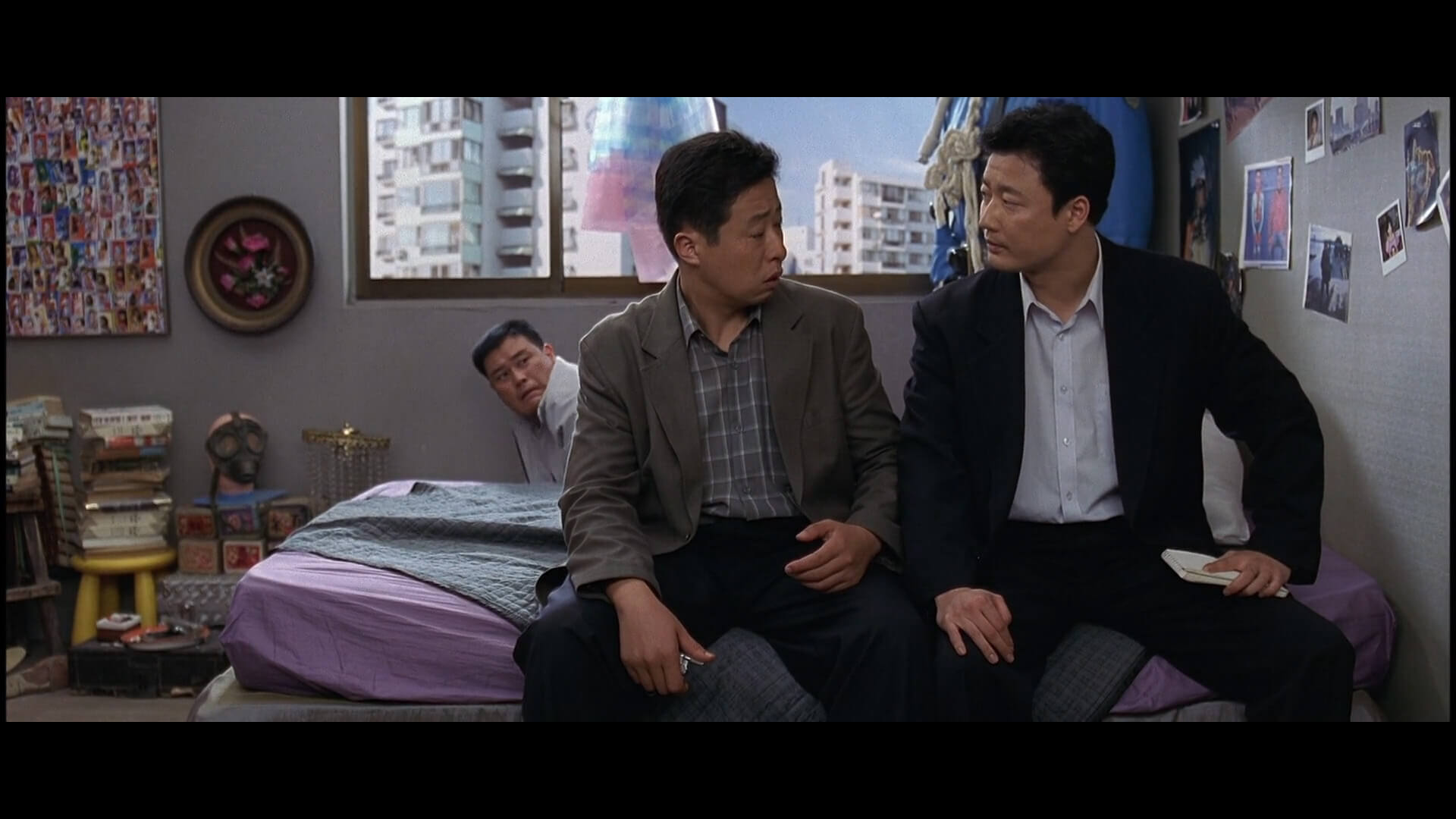 시민아파트들은 워낙 높은 곳에 있다보니 뷰가 정말 빼어난데 이 홍제 시민아파트도 그러하여 이 장면에서는 내부순환로와 화면 중앙에 홍제동 342번지의 중앙하이츠 아파트가 보이고 그 뒤로 그랜드 힐튼 호텔이었던 현 스위스 그랜드 호텔도 보입니다. 오른팔 아래로는 신연중학교의 운동장도 보입니다. 이 씬은 진짜 아파트 내부에서 촬영한 것으로 보입니다.