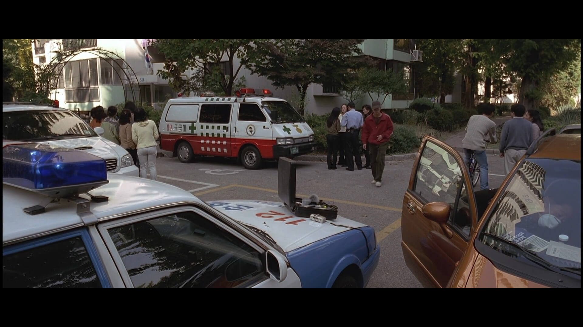 514동 앞의 주차장에서의 모습입니다. 예전의 119 구급대 차량과 경찰 차량이 눈에 띄네요. 514동 앞의 모습은 지금도 그대로 입니다.