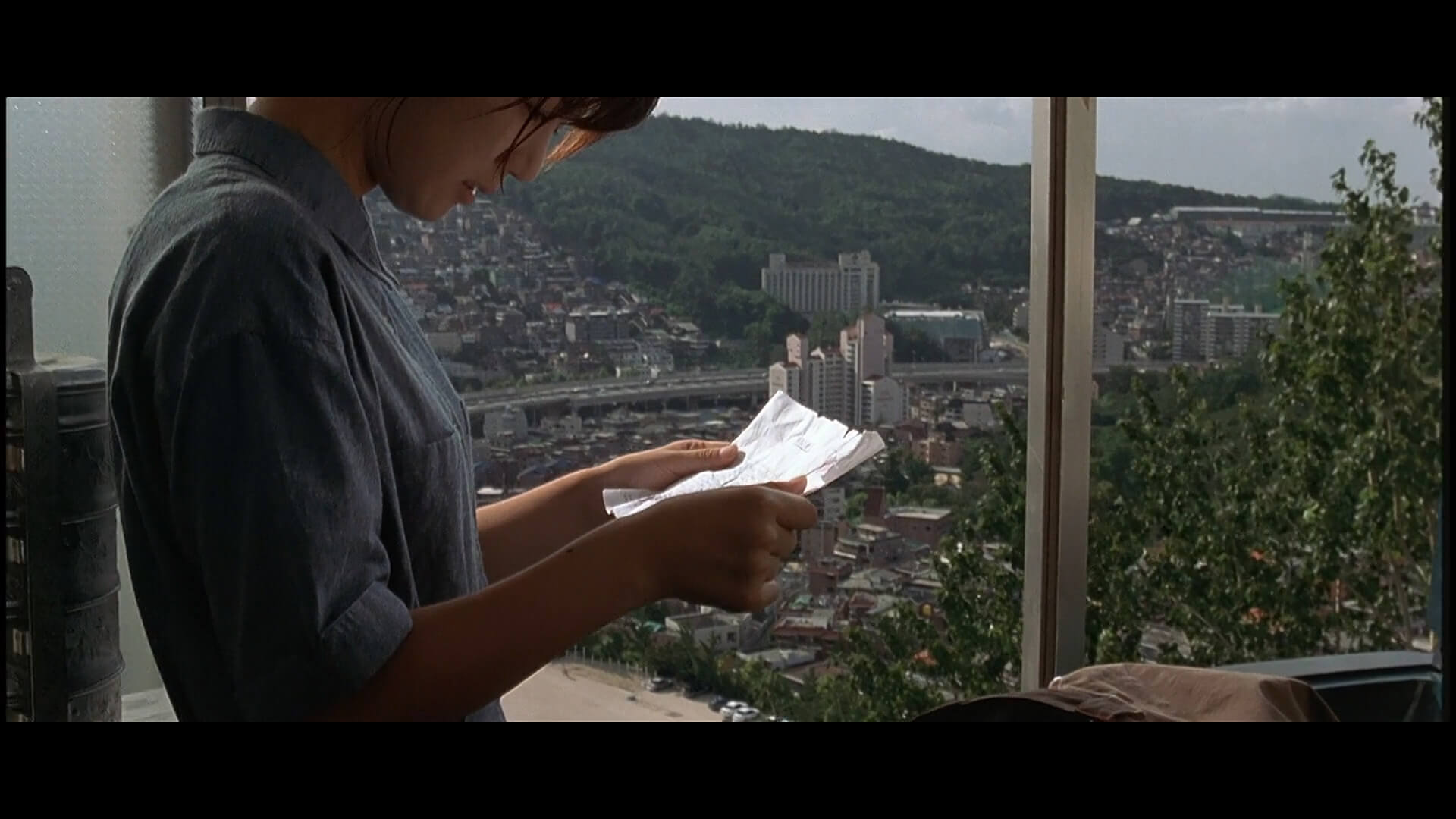 시민아파트들은 워낙 높은 곳에 있다보니 뷰가 정말 빼어난데 이 홍제 시민아파트도 그러하여 이 장면에서는 내부순환로와 화면 중앙에 홍제동 342번지의 중앙하이츠 아파트가 보이고 그 뒤로 그랜드 힐튼 호텔이었던 현 스위스 그랜드 호텔도 보입니다. 오른팔 아래로는 신연중학교의 운동장도 보입니다. 이 씬은 진짜 아파트 내부에서 촬영한 것으로 보입니다.