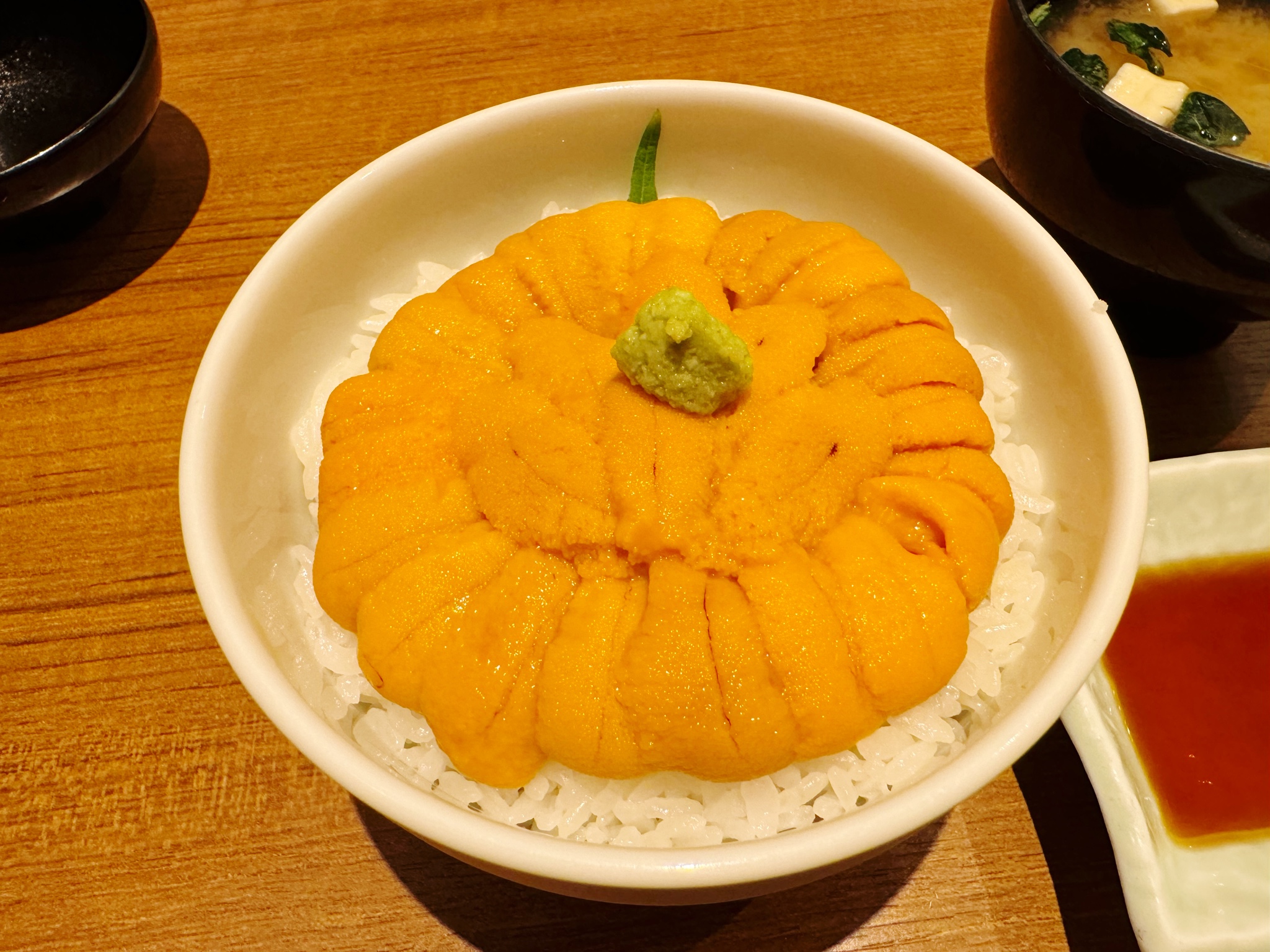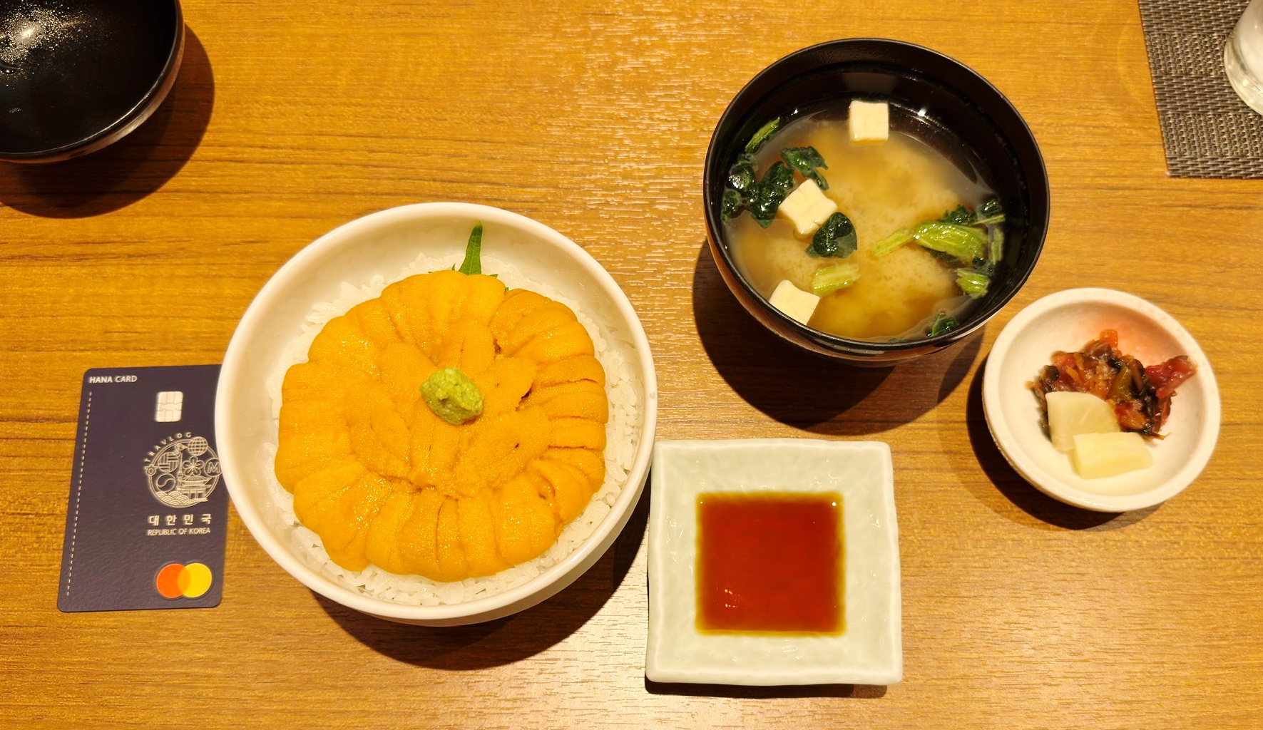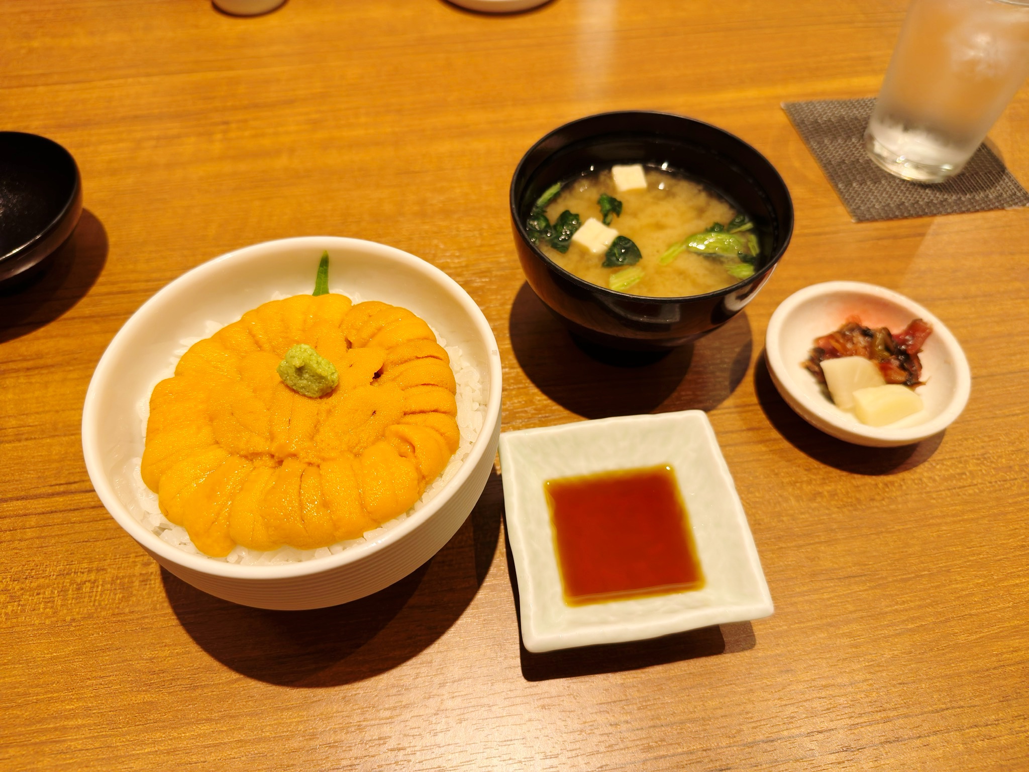 우니동 나왔다! 구성은 좌측부터 우니동 간장 된장국 그리고 절임반찬. 명반 처리가 되지 않은 신선한 우니~ 이런 우니 맛보는 것이 쉽지 않은데 여기선 가능합니다! 제가 본 우니 무라카미 우니동의 첫인상은 제가 알던 우니동과는 뭔가 좀 다르다! 알던 우니동 보다 색이 많이 연한 느낌? 우니도 하나하나가 좀 작은 듯~