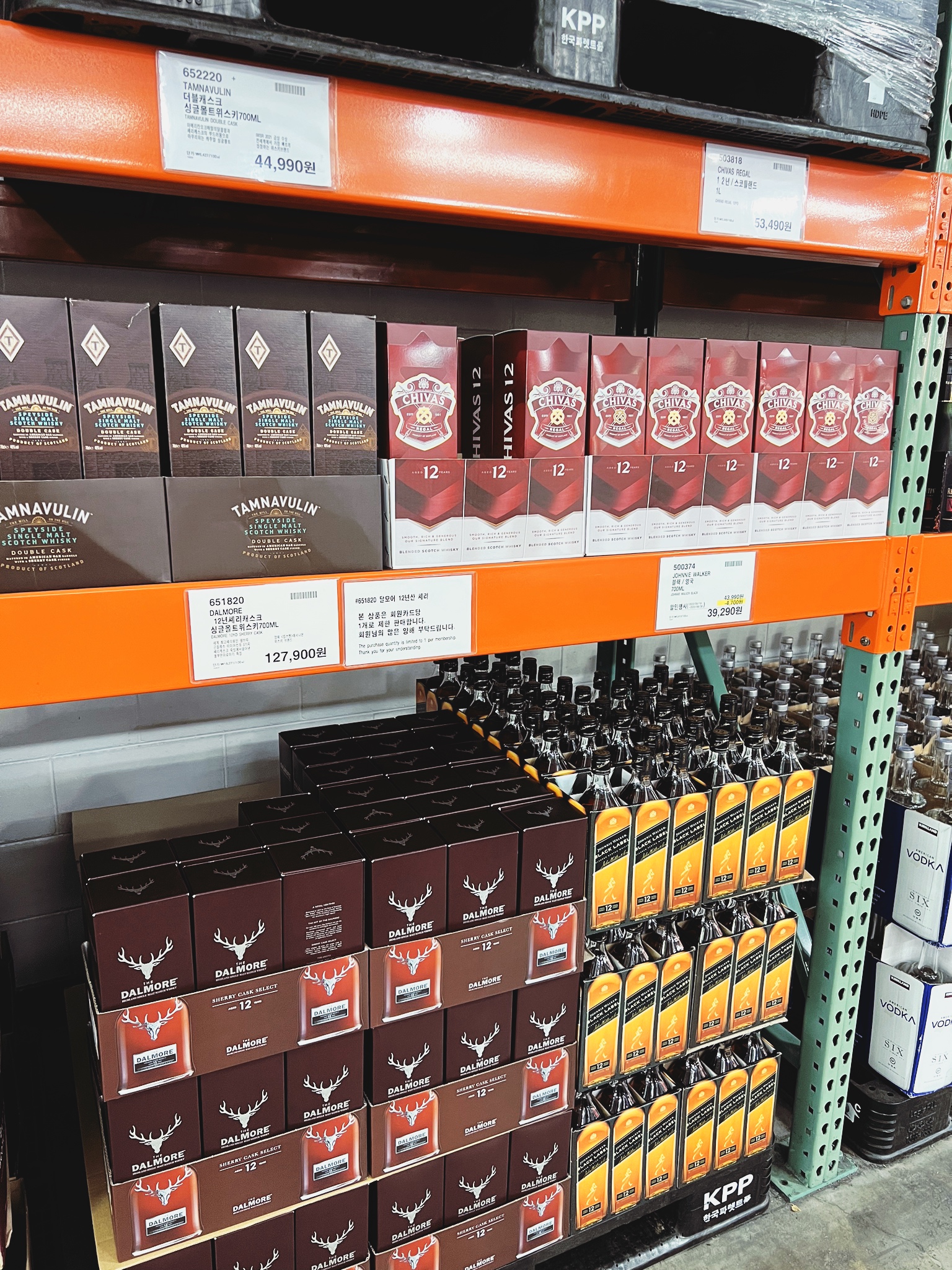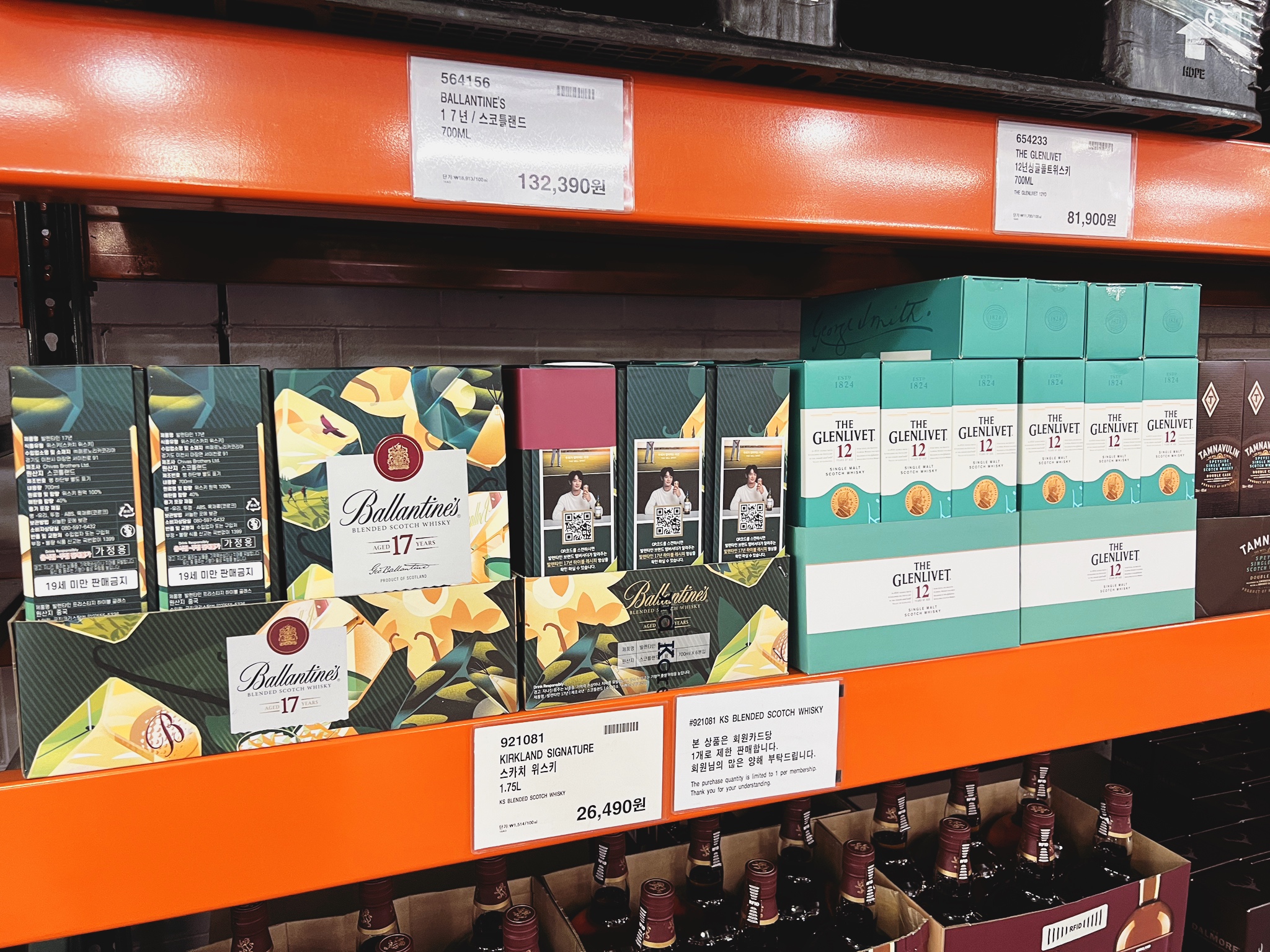 코스트코 양평점 주요 위스키 가격 동향 | 조니워커 블루, 로얄 살루트 21년, 발렌타인 21년 | 2022년 6월 28일