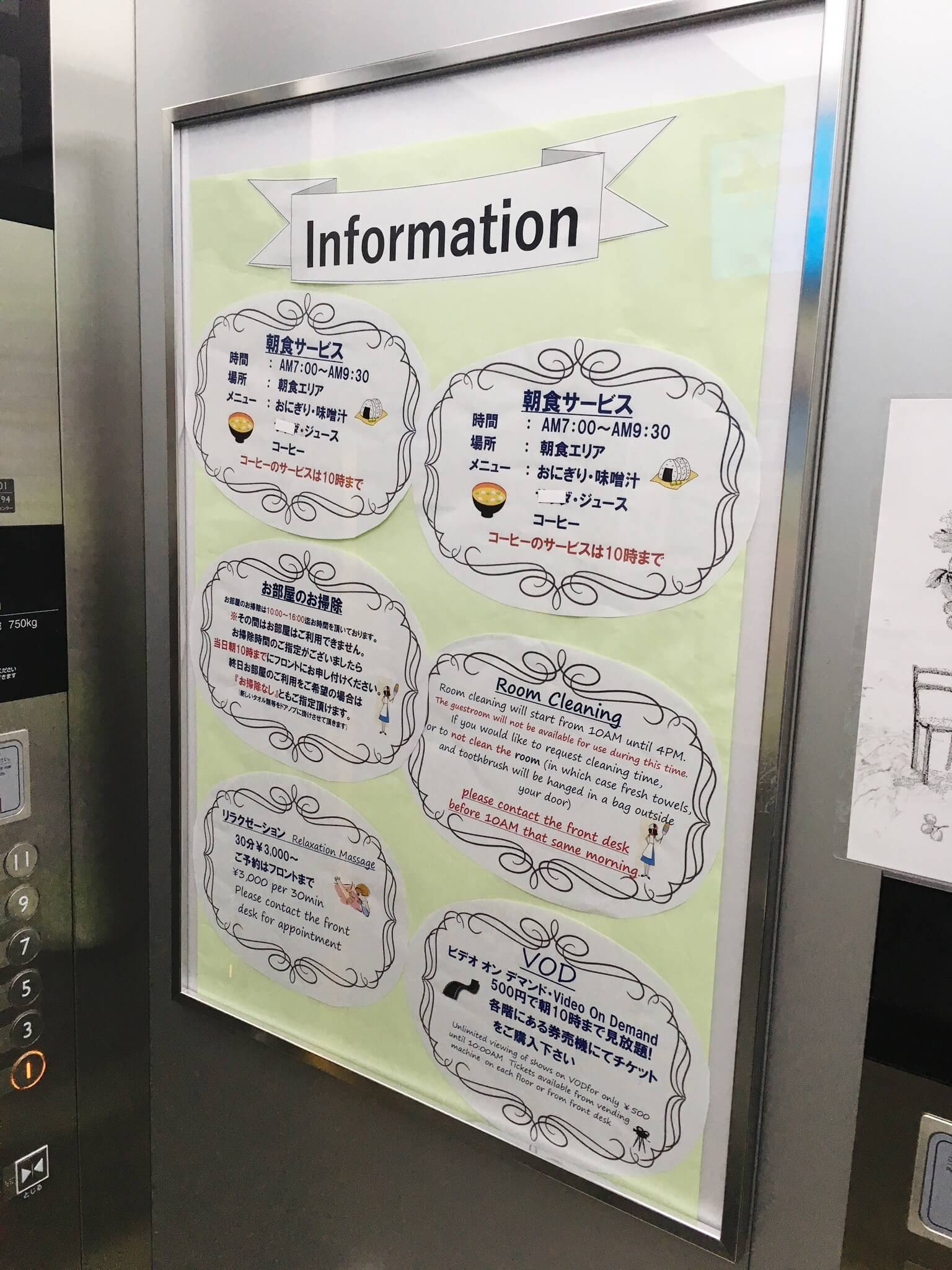 조식이나 각종 서비스를 안내하고 있습니다.
