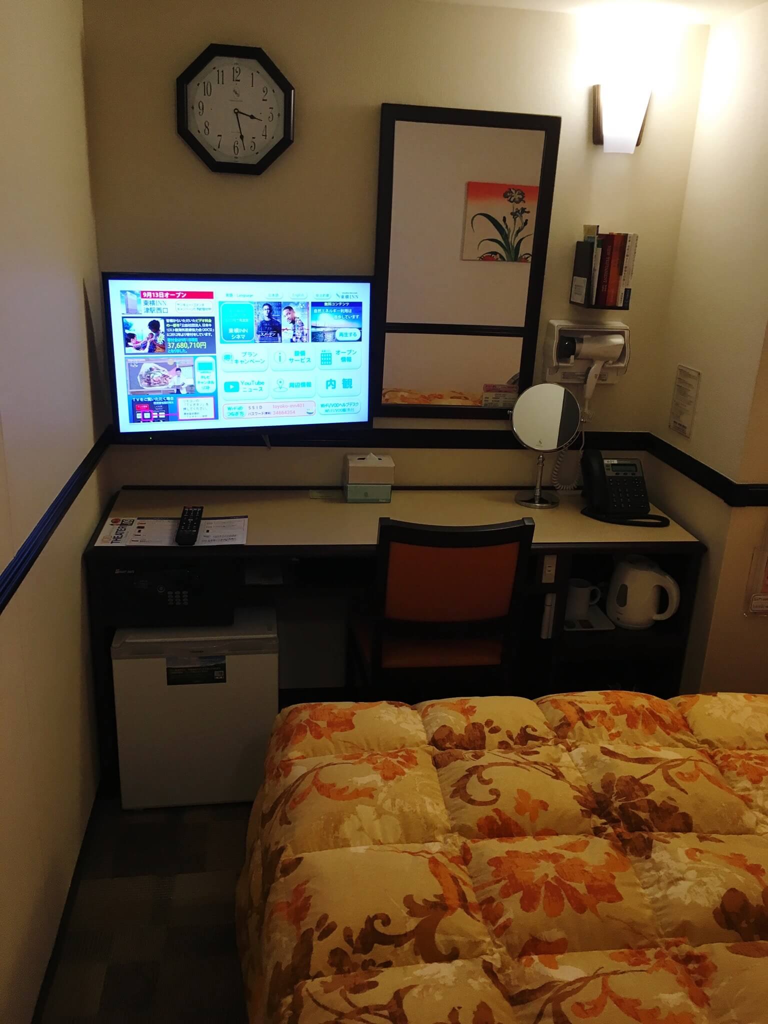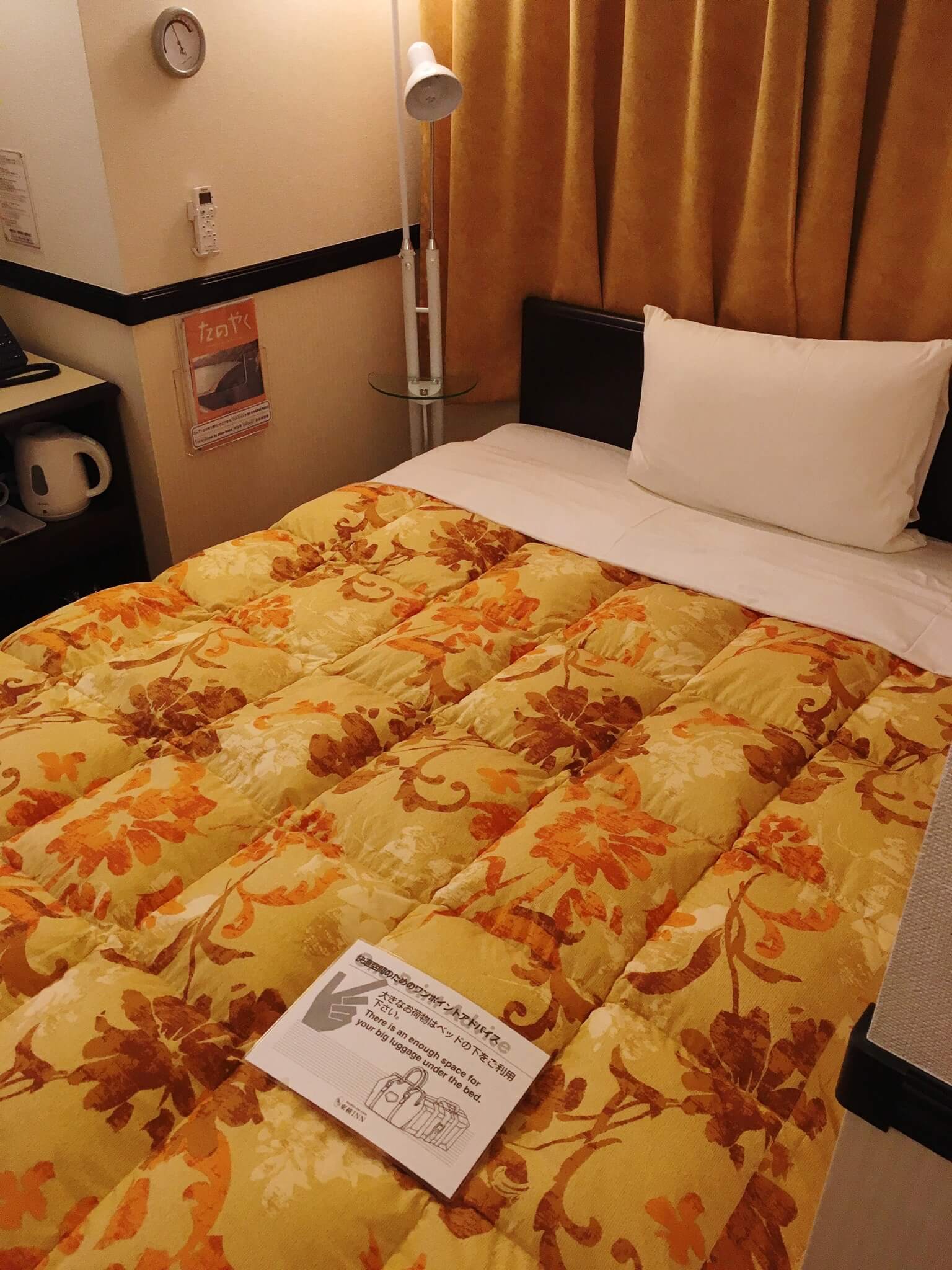 토요코인 답게 객실을 매우 좁습니다. 그러나 잠을 자기에는 전혀 문제가 없습니다.