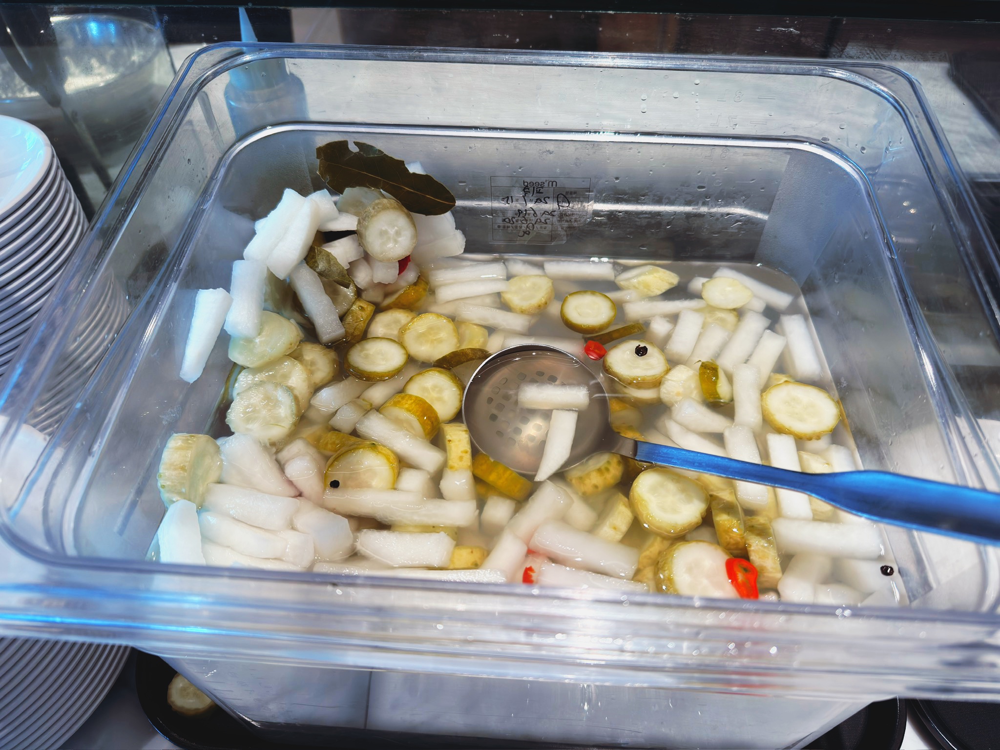 피자 파스타를 주문하면 이렇게 피클을 마음껏 집으실 수 있습니다.