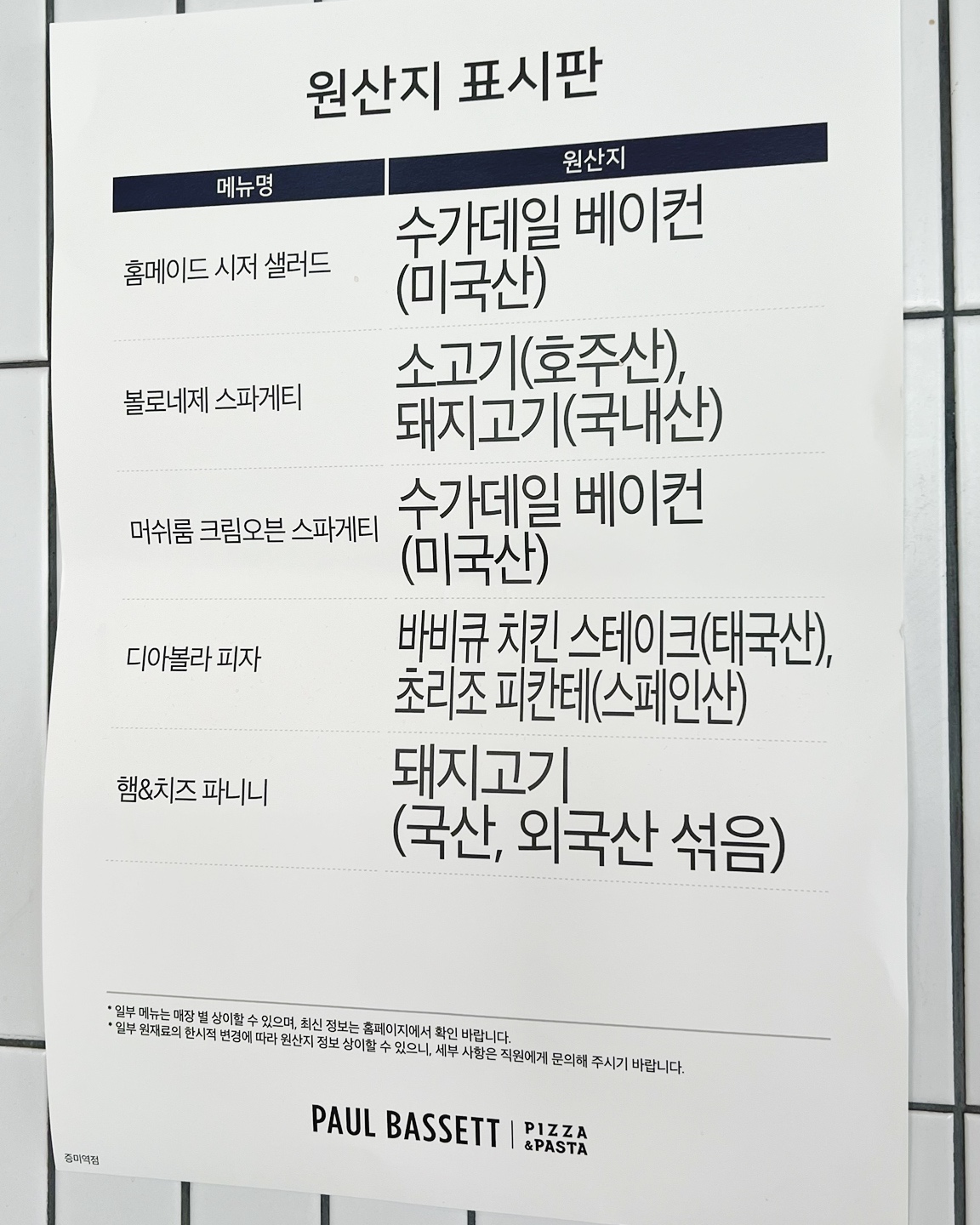 간판에 폴바셋 피자 앤 파스타 라고 되어 있네요. 이런 폴바셋 처음 봅니다.