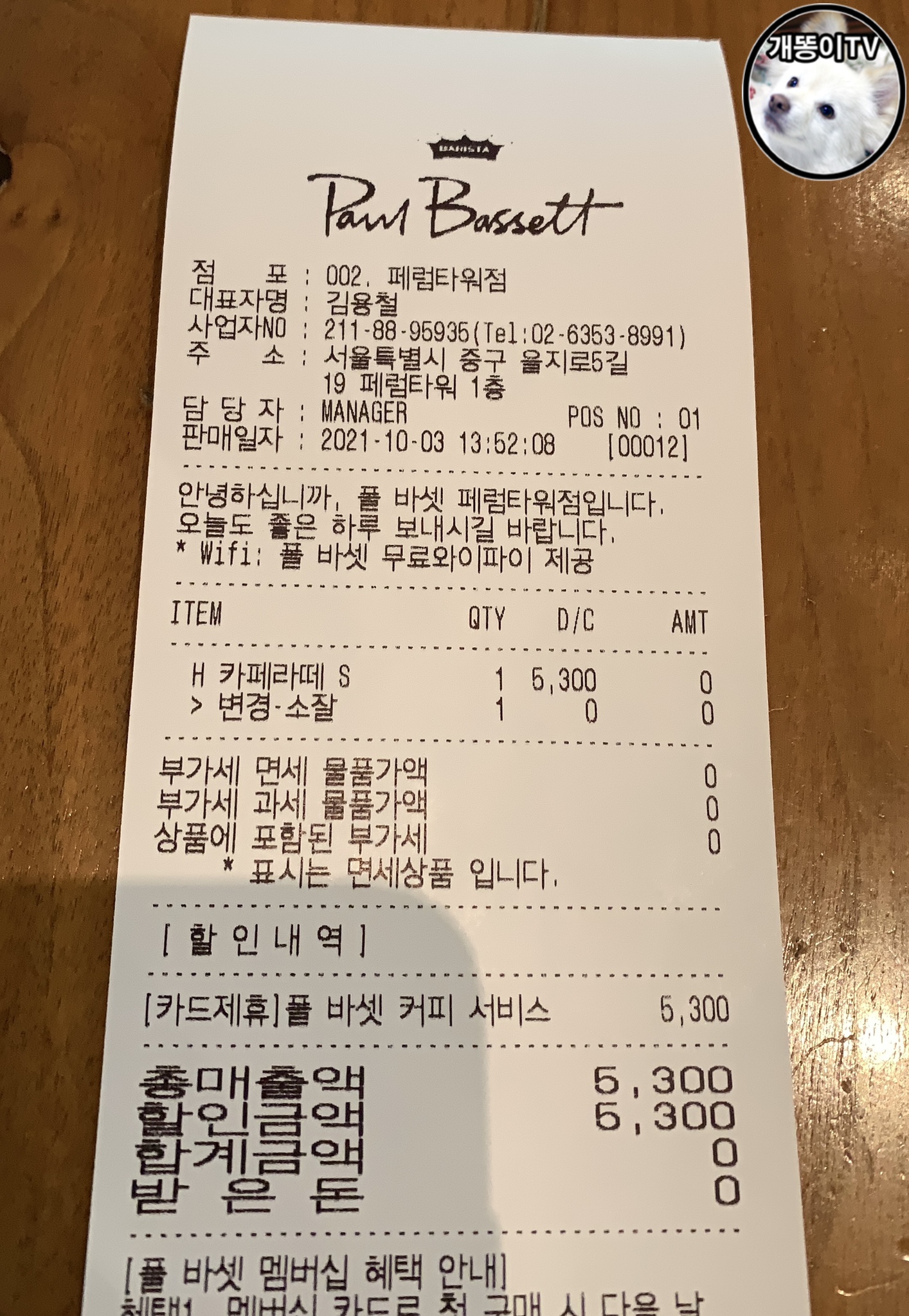 폴바셋 페럼타워점 | 에이스 블루라벨 신한카드의 폴바셋 무료음료 서비스