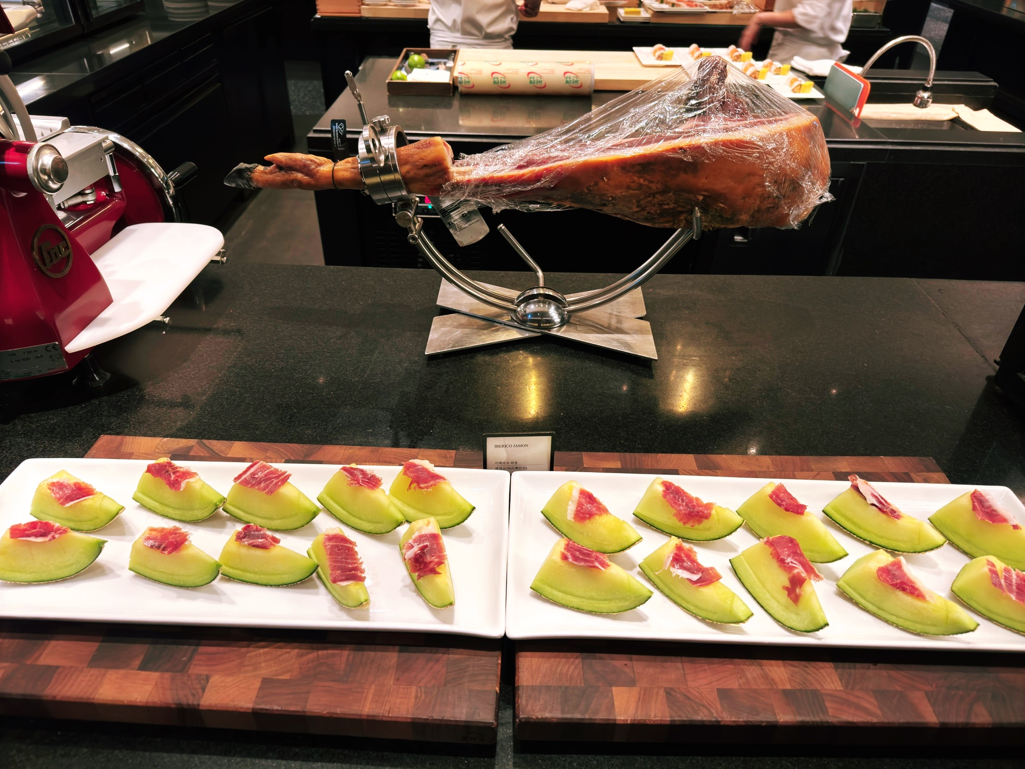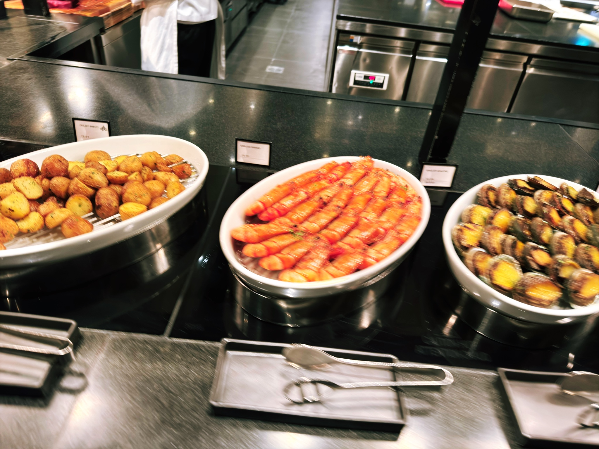 입구에 있는 고기류와 핫푸드들~ 움직이면서 찍는 바람에 저렇게 나왔네요 ㅋㅋ