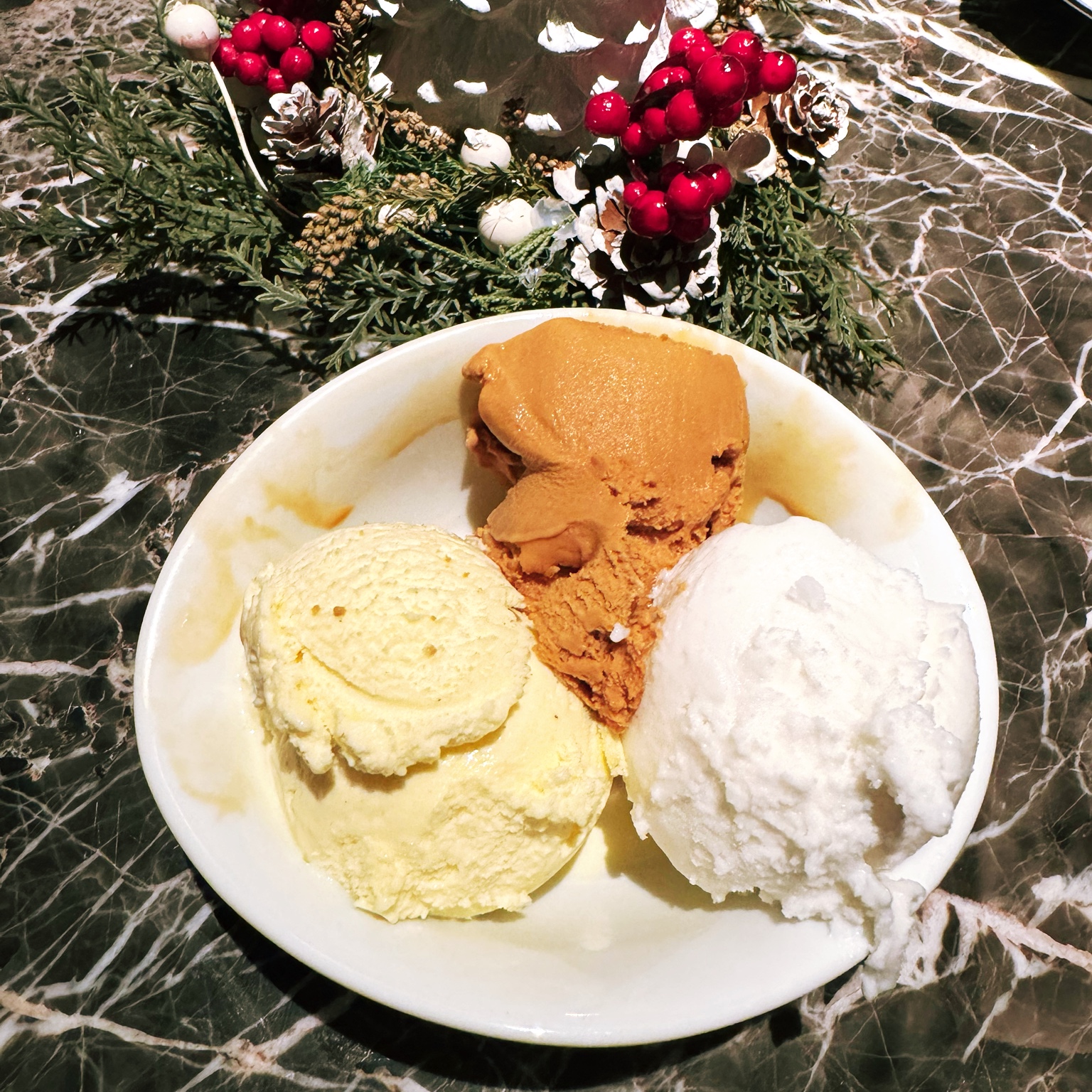 맛있는 아이스크림. 바닐라, 쏠트 카랴멜, 코코넛